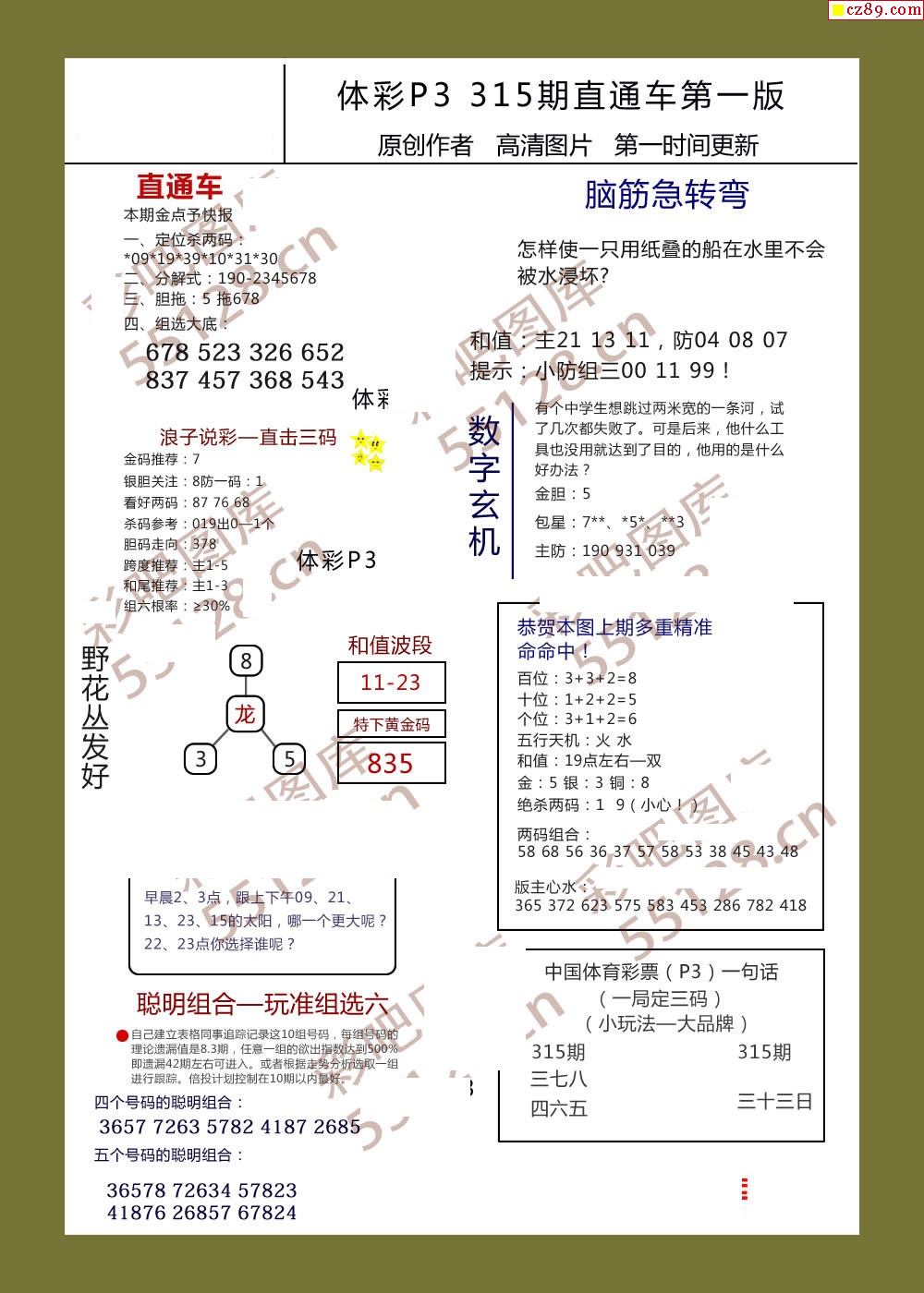 直通车AB版315期体彩p3图谜