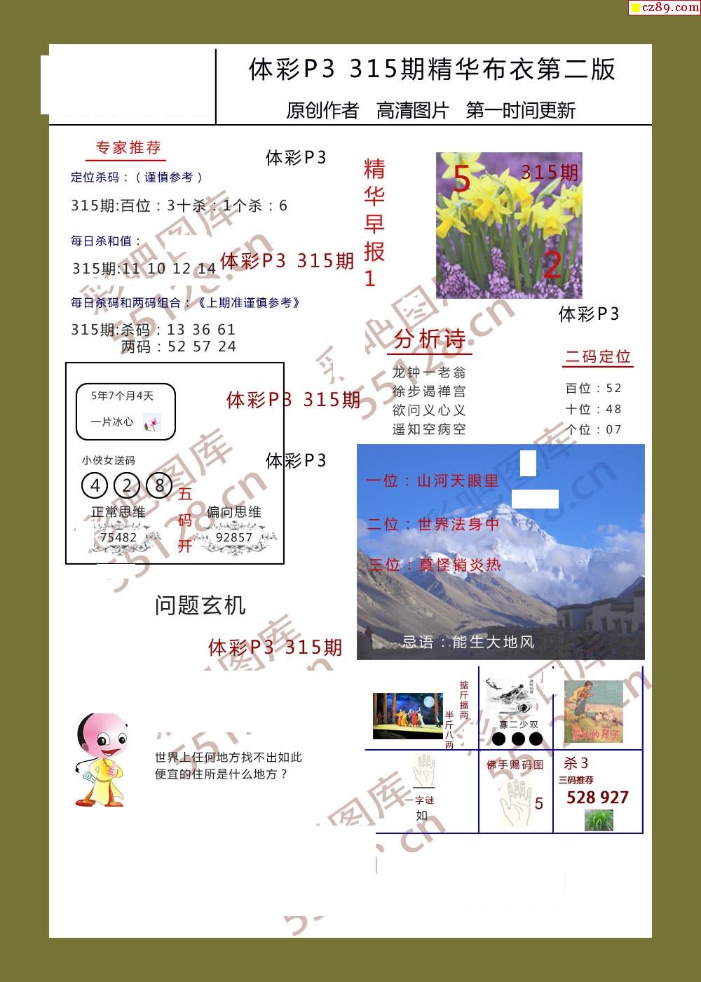 精华布衣彩报315期体彩p3图谜